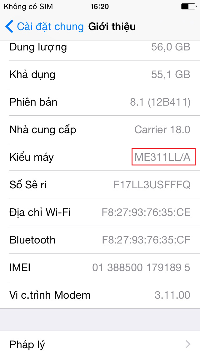 Thêm một thuật ngữ nữa bạn nên chú ý đó chính là Model iphone và nguồn gốc máy. Để biết thêm nguồn gốc của máy dành cho thị trường nào các bạn có thể vào Cài đặt Cài đặt chungGiới thiệuKiểu máy sẽ thấy ký hiệu viết tắt của từng thị trường. Dưới đây là 1 số mã phổ biến của iPhone cho các thị trường.