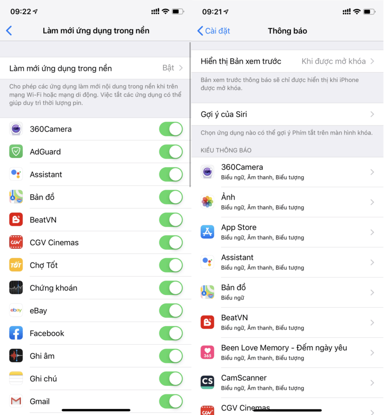 Tắt thông báo/xoá các ứng dụng không cần thiết