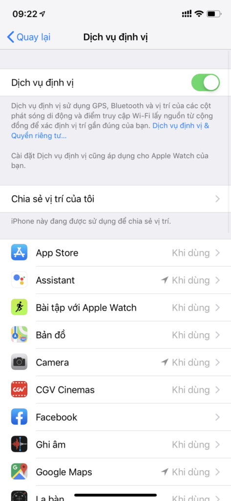 Tắt hoàn toàn định vị GPS cũng tiết kiệm pin đáng kể. Bạn cũng có thể tắt với riêng từng ứng dụng để phù hợp với nhu cầu cá nhân. Cách khác là chỉ cho truy cập GPS khi mở chương trình, thay vì định vị liên tục, cũng cải thiện phần nào pin trên điện thoại. Thiết lập này có thể tìm trong mục cài đặt định vị, quyền riêng tư.