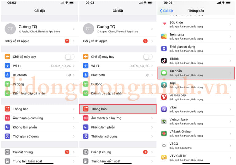 Từ màn hình chính của iPhone, bạn truy cập mục Cài đặt > chọn Thông báo và tìm đến mục Tin nhắn