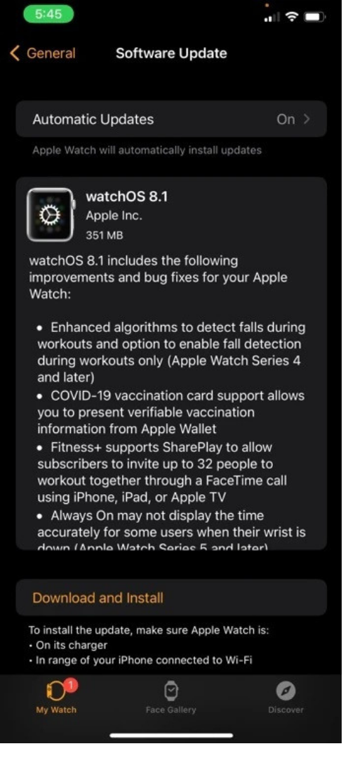 Apple cũng đã phát hành watchOS 8.1. Bản cập nhật có các thuật toán nâng cao để phát hiện ngã trong quá trình tập luyện. Bạn phải đang sử dụng Apple Watch Series 4 trở lên mới có thể sử dụng những tính năng liên quan đến sức khoẻ này. Với tính năng phát hiện rơi, Apple Watch sẽ phát hiện khi nào người dùng bị ngã mạnh và có thể triệu tập trợ giúp khẩn cấp người quen đến trực tiếp vị trí của bạn.