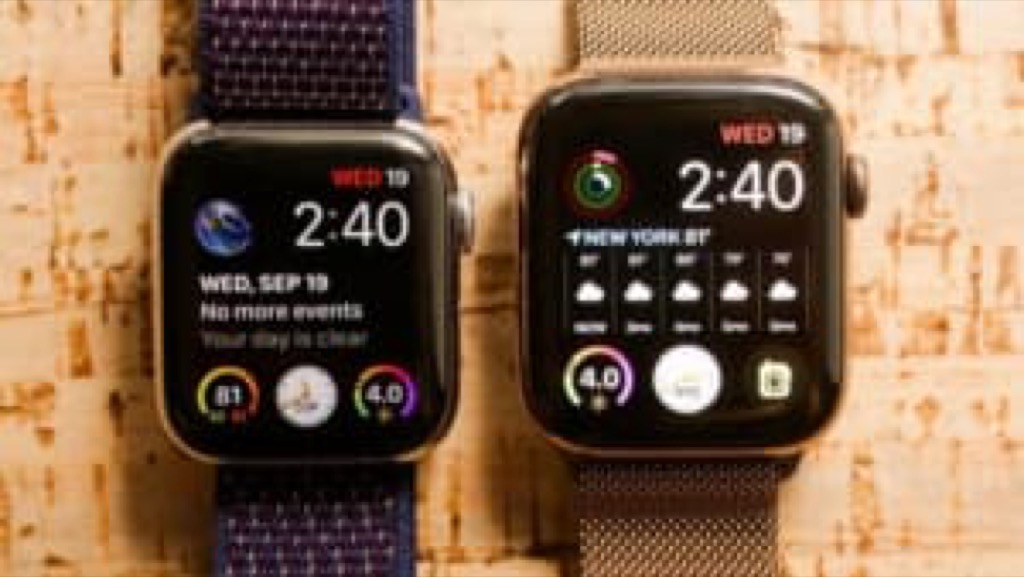 Apple Watch Series 4 có thời lượng sử dụng lâu hơn, màn hình lớn hơn và có thể hiển thị rõ ràng dưới nước hoặc dưới ánh nắng mặt trời. Cả hai series đều có những ứng dụng tập luyện như nhau.