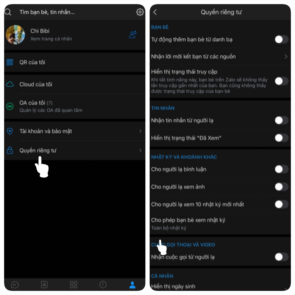 Tính năng này cho phép bạn chặn tin nhắn và cuộc gọi từ người lạ, không cho người lạ bình luận ảnh của bạn, không cho người lạ xem hình ảnh và nhật ký mà bạn đăng tải. Để làm được điều này bạn cần thực hiện như sau: