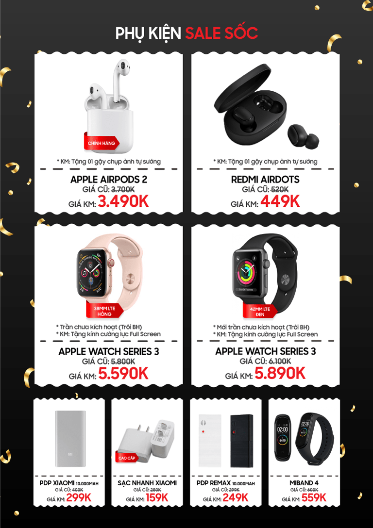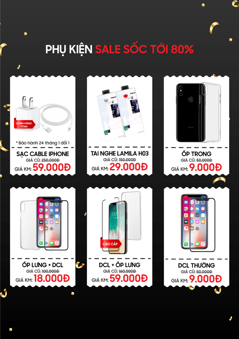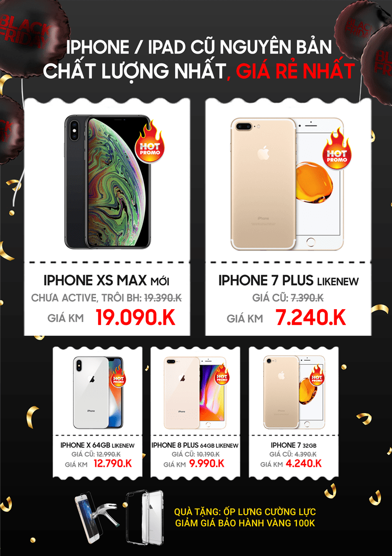 Black Friday hay “thứ Sáu đen” là ngày hội mua sắm lớn với nhiều chiến dịch giảm giá sâu, nhiều deal hấp dẫn. Cùng với các chương trình xả hàng phụ kiện giảm giá sốc tới 80%, smartphone sale hơn 50% như bên dưới đây, Quý khách hàng không nên bỏ lỡ chương trình flash sale cực kỳ hấp dẫn: tặng siêu voucher giảm giá 600.000đ cho tất cả các mặt hàng Điện thoại/Máy tính bảng.