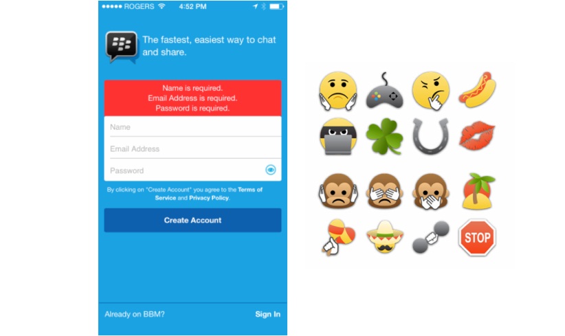 Phiên bản Blackberry Messenger 2.2 đã chính thức đến tay người dùng Android và iOS, với vô vàn tiện ích và những tính năng mới lạ. Theo đó, bản cập nhật mới đã đơn giản hóa quá trình đăng ký. Giờ đây, bạn chỉ cần đưa ra các thông tin liên quan đến tên, địa chỉ email và mật khẩu là đã có thể trở thành người dùng mới của ứng dụng cung cấp dịch vụ nhắn tin nổi tiếng này. Bên cạnh đó, BBM cũng giới thiệu môt màn hình đăng nhập cách tân cho người dùng hiện tại của ứng dụng.