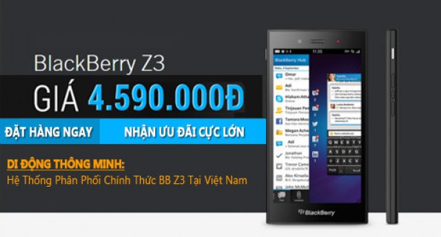 DI ĐỘNG THÔNG MINH là 1 trong những hệ thống cửa hàng lớn phân phối Blackberry Z3 được ủy quyền bởi Blackberry thông qua nhà phân phối SMARTCOM