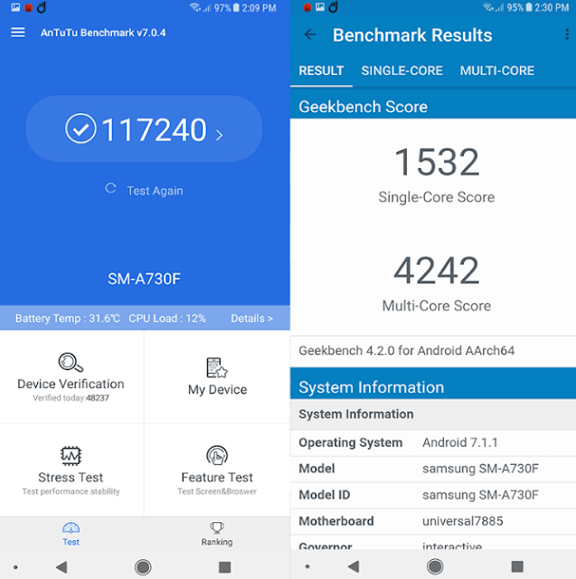 Điểm hiệu năng Galaxy A8 Plus trên Antutu chỉ đạt 117.240