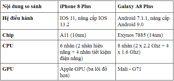 – Với smartphone ra mắt năm 2018: iPhone 8 Plus với Galaxy A8 Plus.