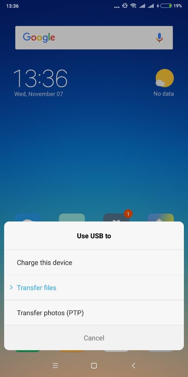 Tiếp theo, cấm cáp kết nối điện thoại và máy tính của bạn để lấy File đã sao lưu trên điện thoại vừa rồi Copy vào máy tính. Chọn Transfer files ( cho phép truyền file)