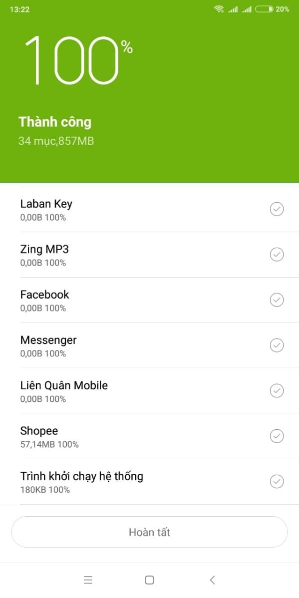 Sau khi sao lưu xong nhấn hoàn tất để kết thúc.