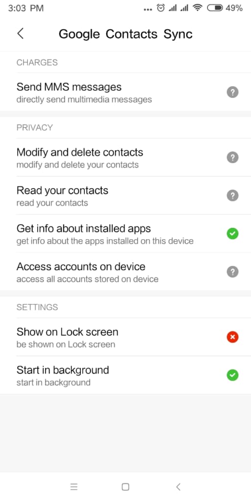 Trong phần cài đặt app Google Contacts Sync, Permission Autostart -> Enable (Bật)