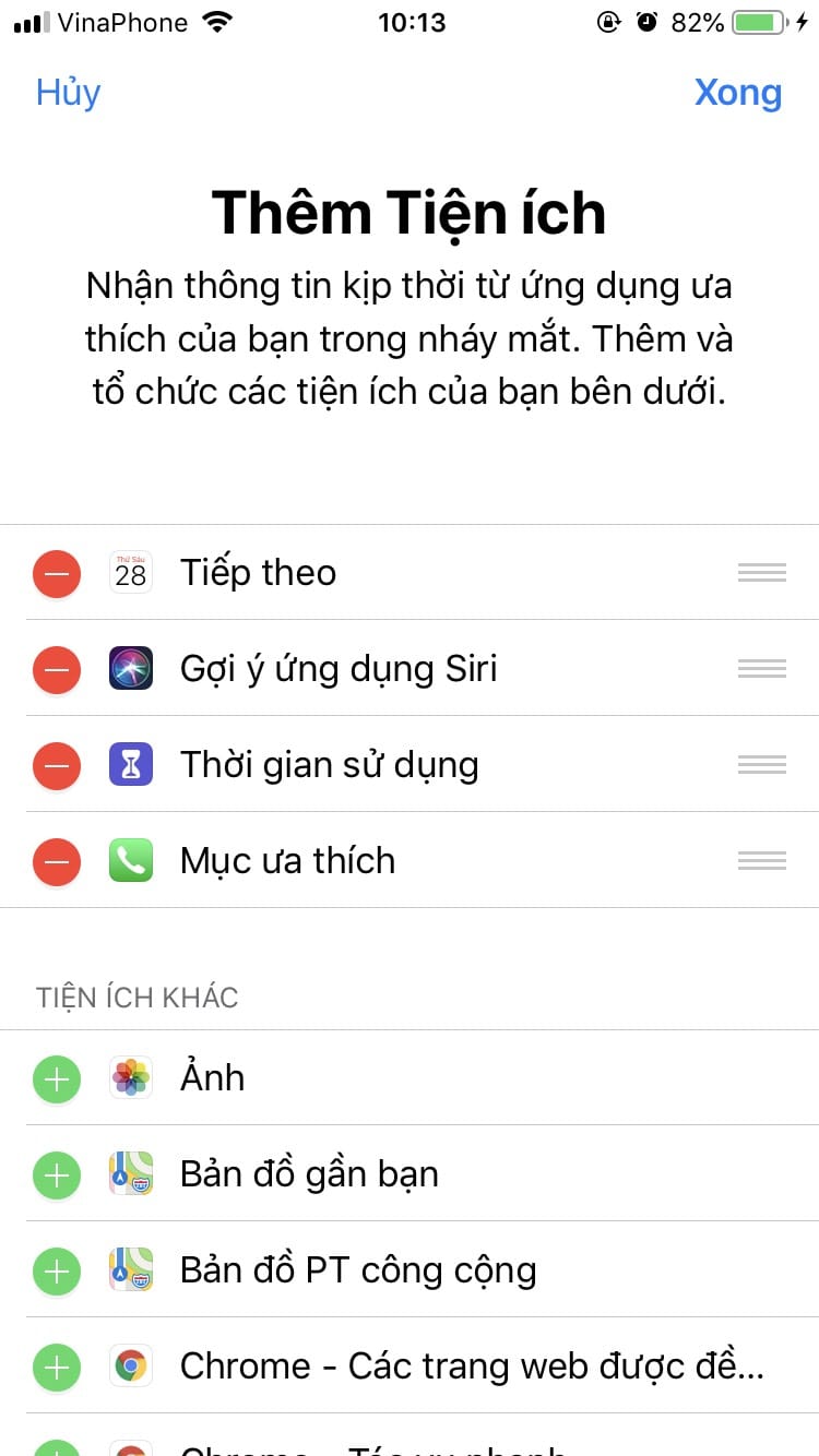 Tiếp theo, bạn sử dụng biểu tượng hình ba thanh ngang để sắp xếp lại widget. Nhấn nút Xong góc trên phải khi hoàn tất.