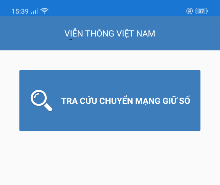 Bước 2: Ứng dụng có chức năng chính là “Tra cứu” thuê bao đã thực hiện chuyển mạng giữ số nên giao diện ứng dụng rất sơ sài. Tất cả những gì bạn cần làm chỉ đơn giản là ấn vào nút “Tra cứu chuyển mạng giữ số” màu xanh trên màn hình.