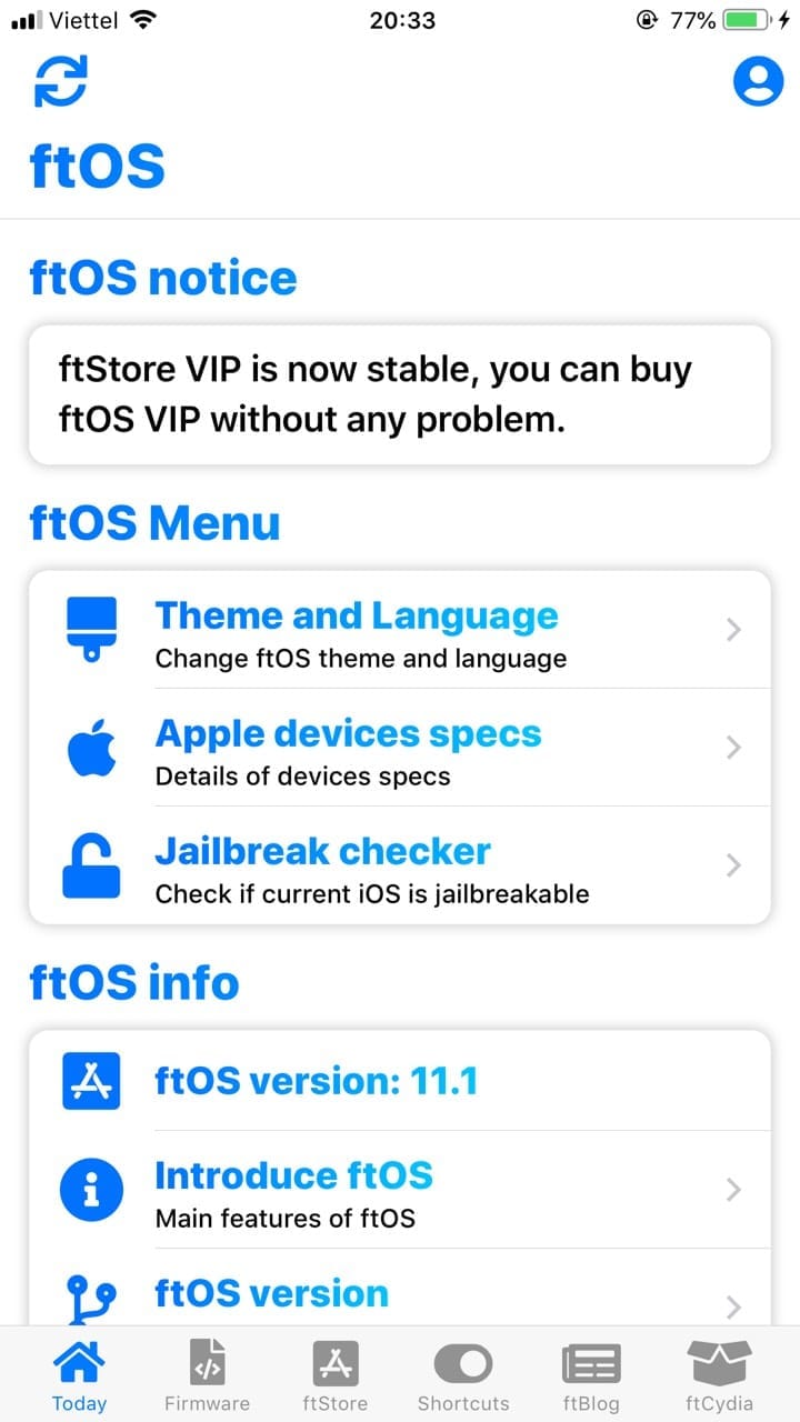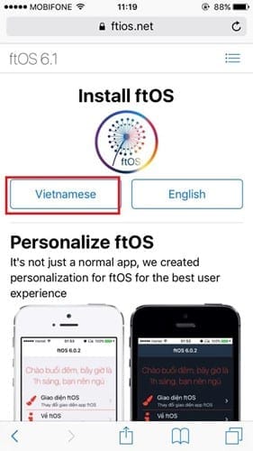 Đầu tiên các bạn hãy vào Safari trên màn hình iPhone và tải Install ftOS trên trang ftios.net, ở đây