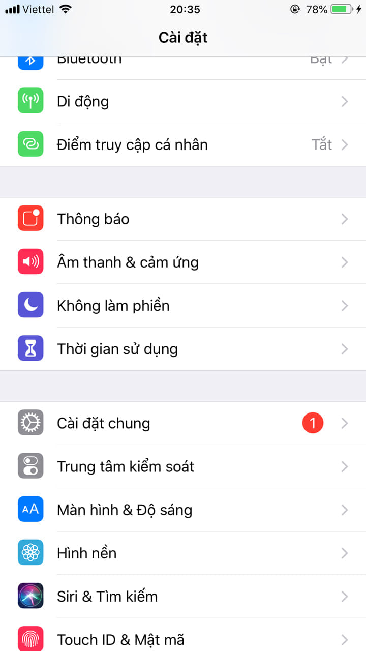 Vào cài đặt>> Cài đặt chung