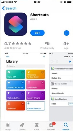 Bước 1: Truy cập vào App Store, tìm và tải về ứng dụng Shortcuts ( Phím tắt ) được cung cấp miễn phí bởi Apple.
