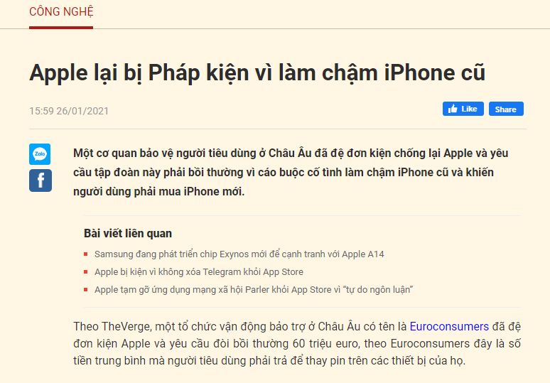 Lý do vì sao chuyển sang Pháp lại khiến iPhone nhanh hơn thì lục lại lịch sử vào năm ngoái Apple đã bị một cơ quan bảo vệ người tiêu dùng Châu Âu đệ đơn kiện vì cố tình làm chậm các thiết bị đời cũ, cũng có thể đây là lý do khiến iPhone nhanh hơn khi ở vùng của Pháp