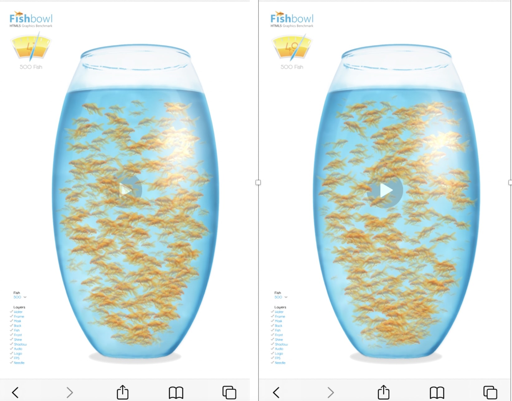 Tiến hành test thử hiệu năng bằng công cụ FishBowl tại đây kết quả trước khi chuyển thì máy đo được là 41 con cá, sau khi chuyển vùng sang Pháp thì kết quả đã tăng lên 47 con cá, rõ ràng hiệu năng đã được cải thiện.