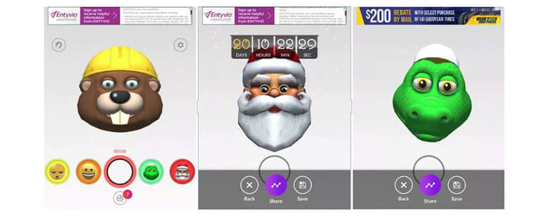 Ứng dụng này cung cấp một loạt các biểu tượng cảm xúc cổ điển, động vật, nhân vật… để ghi lại nét mặt và giọng nói của bạn. Nó sử dụng camera mặt trước để ghi lại nét mặt, mặc dù mọi thứ sẽ không “chuẩn chỉnh” như camera TrueDepth. Mọi thứ vẫn ổn để bạn chia sẻ được cho bạn bè. Nhưng bạn cần lưu ý là không để iPad và iPhone của bạn chuyển động camera trước quá nhanh.
