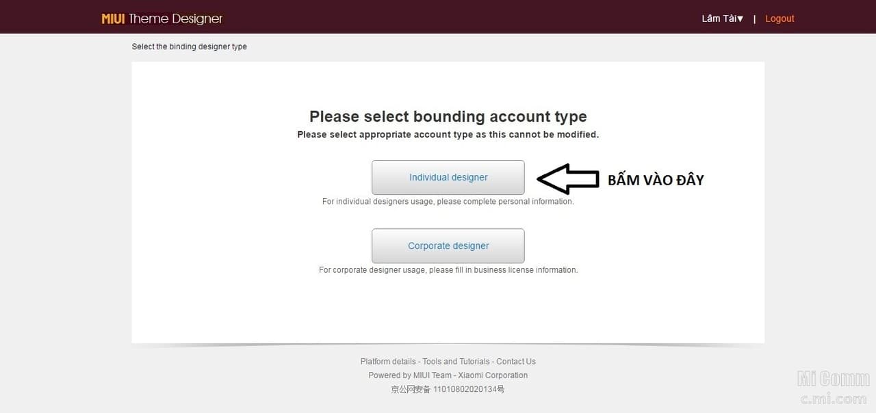 Các bước để có thể đăng ký tài khoản Mi Designer