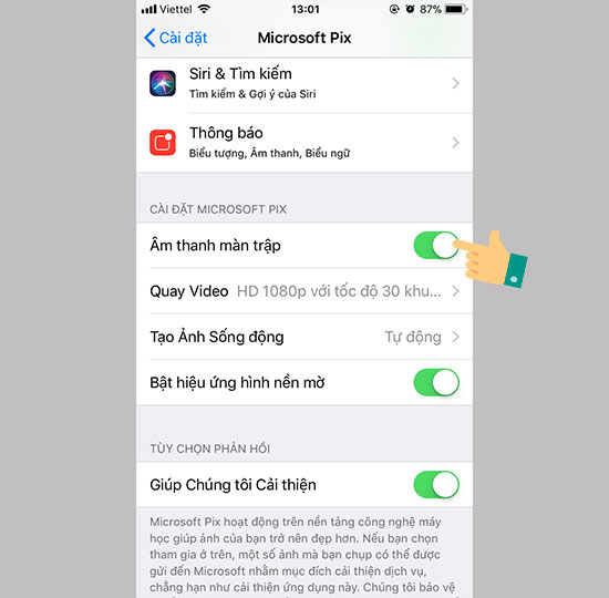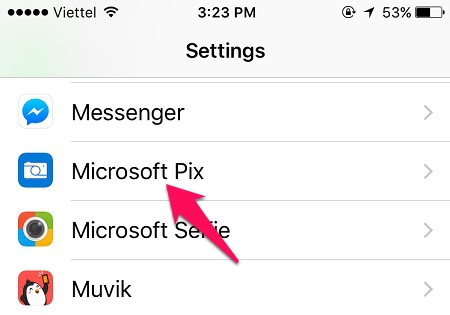 Sau khi tải xong bạn vào phần cài đặt của máy. Tìm đến mục Microsoft Pix.