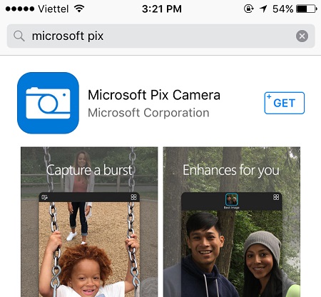 - Đầu tiên bạn vào AppStore và tải ứng dụng Microsoft Pix Camera. Hoặc nhấn vào đây để tải