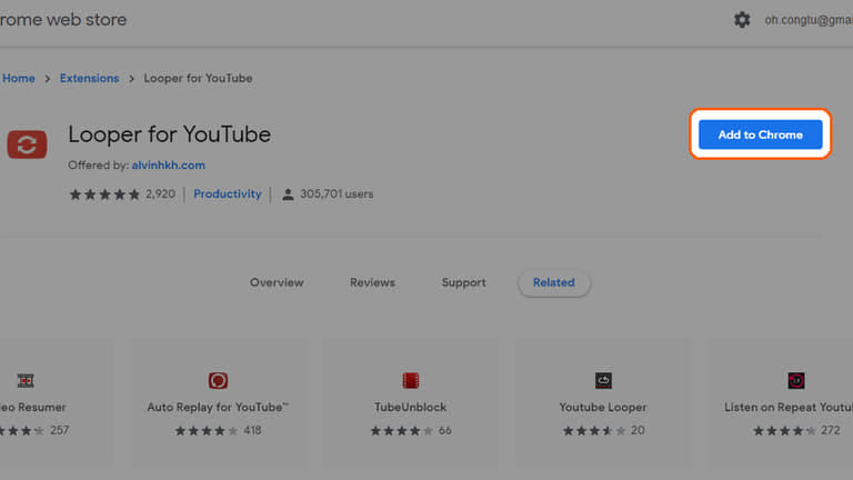 Đầu tiên, bạn hãy vào link bên dưới để cài đặt tiện ích dành cho Google Chrome có tên “Looper for Youtube”.