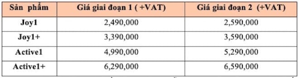 Giá bán của Vsmart Joy 1, Joy 1+, Active 1 và Active 1+