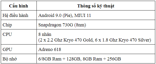 Theo thông tin chính thức từ phía nhà sản xuất, Mi CC9 Pro sở hữu các đặc trưng cấu hình như sau: