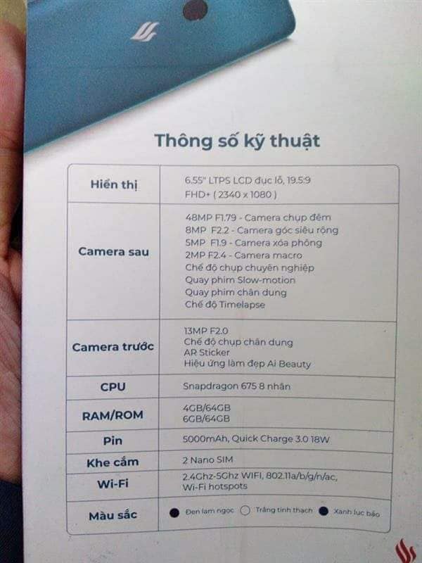 Cùng với đó, ảnh rò rỉ cũng cho hay, tại mặt lưng, chúng ta sẽ có cụm 4 camera sau xếp hàng dọc lệch về góc trái cùng một vị trí cảm biến vân tay vật lý. Về màu sắc thiết kế, Vsmart Live 4 sở hữu ba tùy chọn gồm: