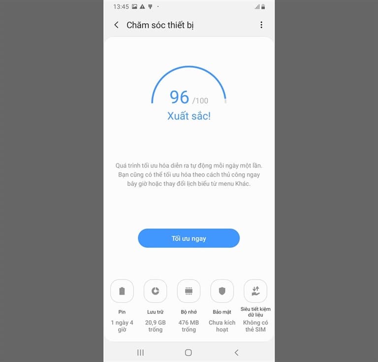 Với một chiếc điện thoại không được đánh giá cao về phần hiệu năng trên Samsung A10s, việc có một trình quản lý bộ nhớ, pin, RAM, rất cần thiết. Với trình Chăm sóc thiết bị của Samsung là sự lựa chọn hoàn hảo cho các bạn để làm việc đấy, vừa tiết kiệm được bộ nhớ khi cài các phần mềm bên thứ 3.