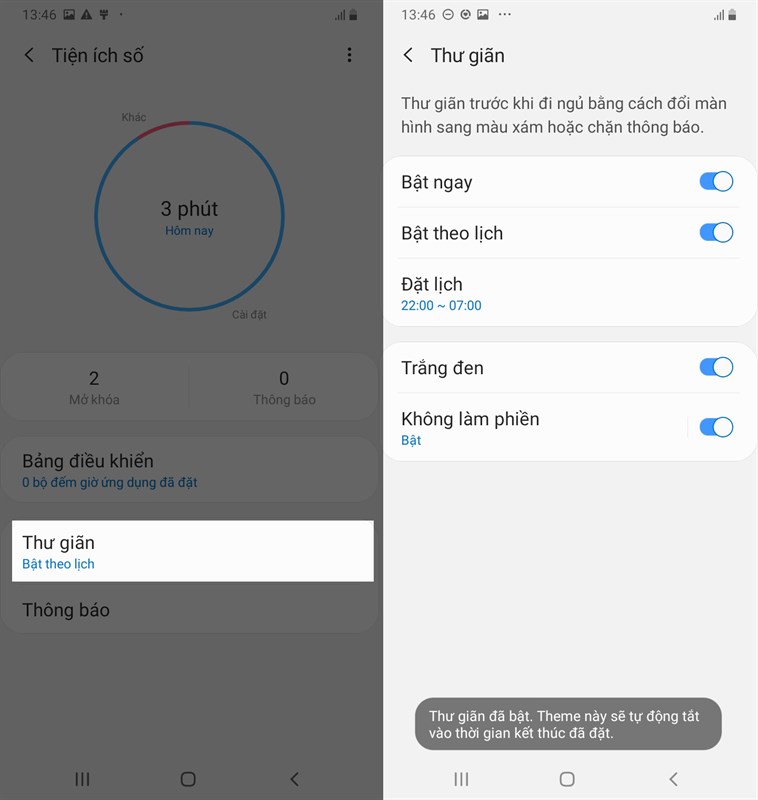 Đây là tính năng giúp bạn chuyển màn hình điện thoại sang màu xám, tắt tất cả thông báo và cuộc gọi, giúp bạn thoải mái sử dụng và chìm vào giấc ngủ dễ dàng hơn.