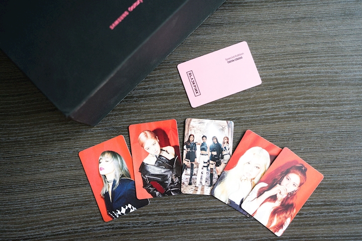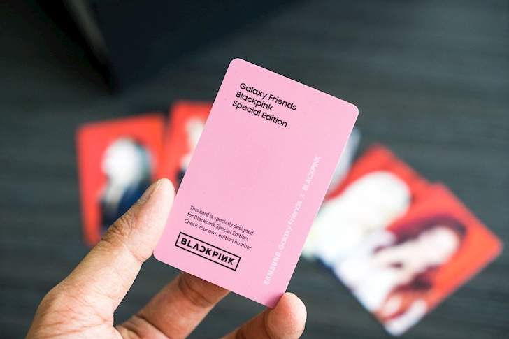 Mở hộp là tấm thiệp màu hồng xinh xinh, dòng chữ “Galaxy Friends Blackpink Special Edition”.