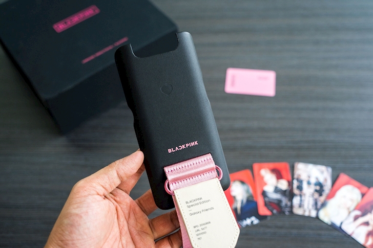 Nhìn từ phía sau của ốp lưng. Nếu để ý kỹ, có thể dễ dàng nhìn thấy logo trái tim được in mờ, thể hiện tình cảm của Samsung và BlackPink đến các fan của họ.