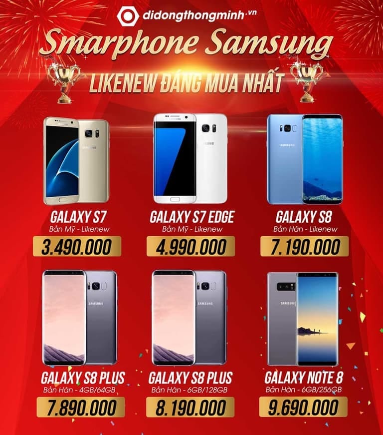 Ngoài những ưu đãi hấp dẫn đến từ Xiaomi, Di Động Thông Minh còn đi đầu trong việc mang những mẫu điện thoại Samsung chính hãng, Samsung qua sử dụng với mức giá tốt nhất tới tay khách hàng. Với hệ thống 21 showrooms trên toàn quốc, Di Động Thông Minh là một trong những đối tác chiến lược quan trọng nhất của Samsung ở thị trường Việt Nam.