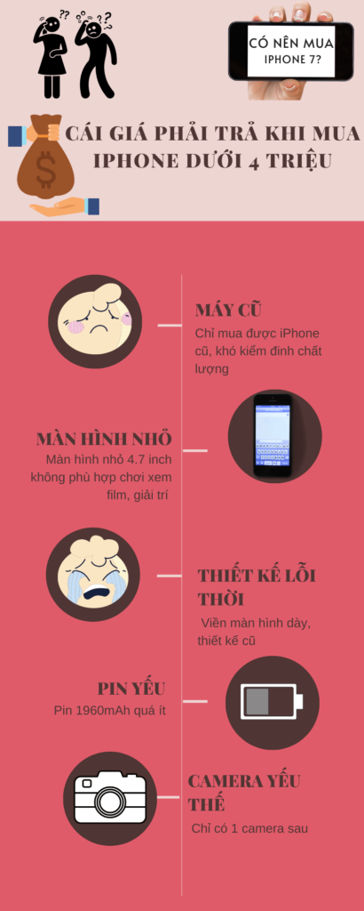 Nếu chỉ chọn iPhone dưới 4 triệu, chúng ta có đại diện iPhone 7 mà bỏ lỡ những chiếc Andorid thì chúng ta sẽ phải trả giá cho những điều sau: