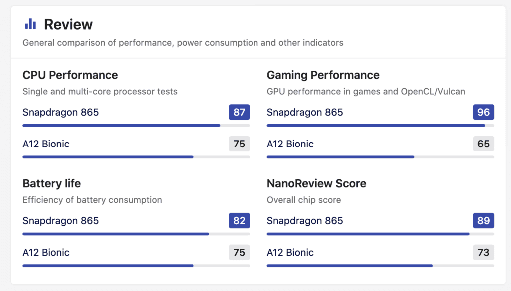 Mặc dù iPhone Xr có hiệu năng tốt nhưng chưa phải mạnh nhất, nhìn sang Mi 10T Pro đến từ nhà Mi với con chip Snapdragon 865 sẽ đánh bại hiệu năng của Apple A12 trên iPhone Xr. Không những thế Mi 10T Pro còn được trang bị màn hình siêu mượt lên đến 144Hz hỗ trợ HDR10+. Vì vậy đối với bạn nào cần tìm mua 1 chiếc máy chơi game tốt, màn hình mượt thì lựa chọn Mi 10T Pro, đối với bạn nào là fan nhà Táo thích trải nghiệm hệ điều hành iOS ổn định thì lựa chọn iPhone Xr. Dưới đây là ảnh so sánh hiệu năng con chip Snapdragon 865 với chip Apple A12 bionic để các bạn tham khảo.