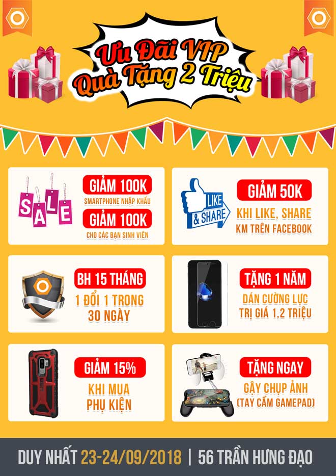 - Giảm trực tiếp 100.000vnđ tiền mặt cho các Smartphone (áp dụng các sản phẩm giá > 2 triệu)