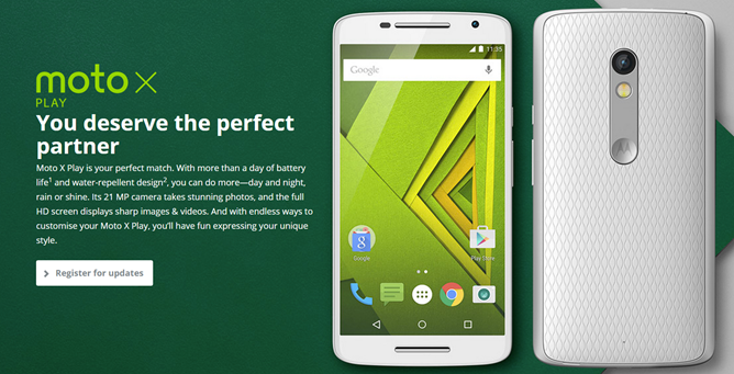 Bốn sản phẩm đầu tiên được phân phối chính hãng là Motorola Moto E, Motorola Moto G, cả 2 đều là phiên bản thứ 2 với giá lần lượt là 2.590.000 và 3.490.000. Tiếp theo là Motorola Moto X Play giá 8.190.000 và thiết bị cao cấp Motorola Moto X Style giá 13.290.000. Mỗi máy đều sở hữu 1 ưu điểm riêng. Moto E phiên bản thứ 2 là thiết bị giá rẻ chạy trên hệ điều hành Android 5.0, màn hình kích thước 4.5”, phần cứng chip Qualcomm S410, 4 nhân Cortex A53, xung nhịp 1.2Ghz, RAM 1GB. Còn Moto G thế hệ thứ 2 có màn hình nhỉn hơn kích thước 5”, sở hữu chip Qualcomm S400, 4 nhân Cortex A7, xung nhịp 1.2Ghz, bộ đôi camera chất lượng cao so với tầm giá 8Mp và 2Mp.