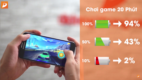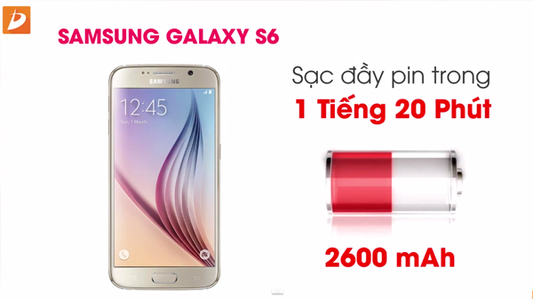 Như vậy có thể thấy mặc dù chỉ sở hữu viên Pin dung lượng 2600mAh trong khi nâng cấp màn hình độ phân giải 2K gấp đôi so với Samsung Galaxy S5 hay trang bị cấu hình khủng hơn rất nhièu. Nhưng đúng như những gì Samsung tuyên bố thời lượng sử dụng Pin của Samsung S6 vẫn không hề thua kém Galaxy S5, thậm chí còn nhỉnh hơn một chút với hơn 6 tiếng phát video lướt web online và hơn 4 tiếng, gần 5 tiếng chơi game 3D, đây rõ ràng là những thong số ấn tượng.