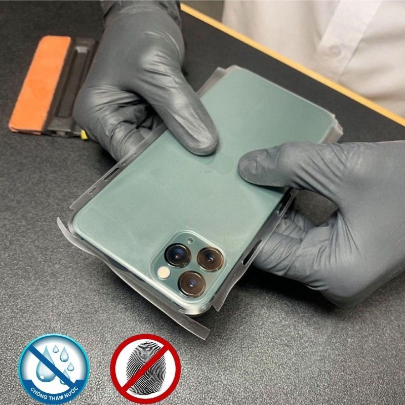 Cuối cùng, miếng dán mặt sau chống bám vân tay, hạn chế mồ hôi, chống bẩn, chống thấm nước và chống ố vàng. Mồ hôi và vân tay là hai thứ khó chịu nhất khi sử dụng điện thoại. Điều này đã được khắc phục triệt để khi dán miếng dán PPF này. Vân tay hoàn toàn không thể bám lên mặt lưng của thiết bị, mồ hôi cũng được hạn chế đáng kể giúp tay bạn luôn khô ráo khi sử dụng.