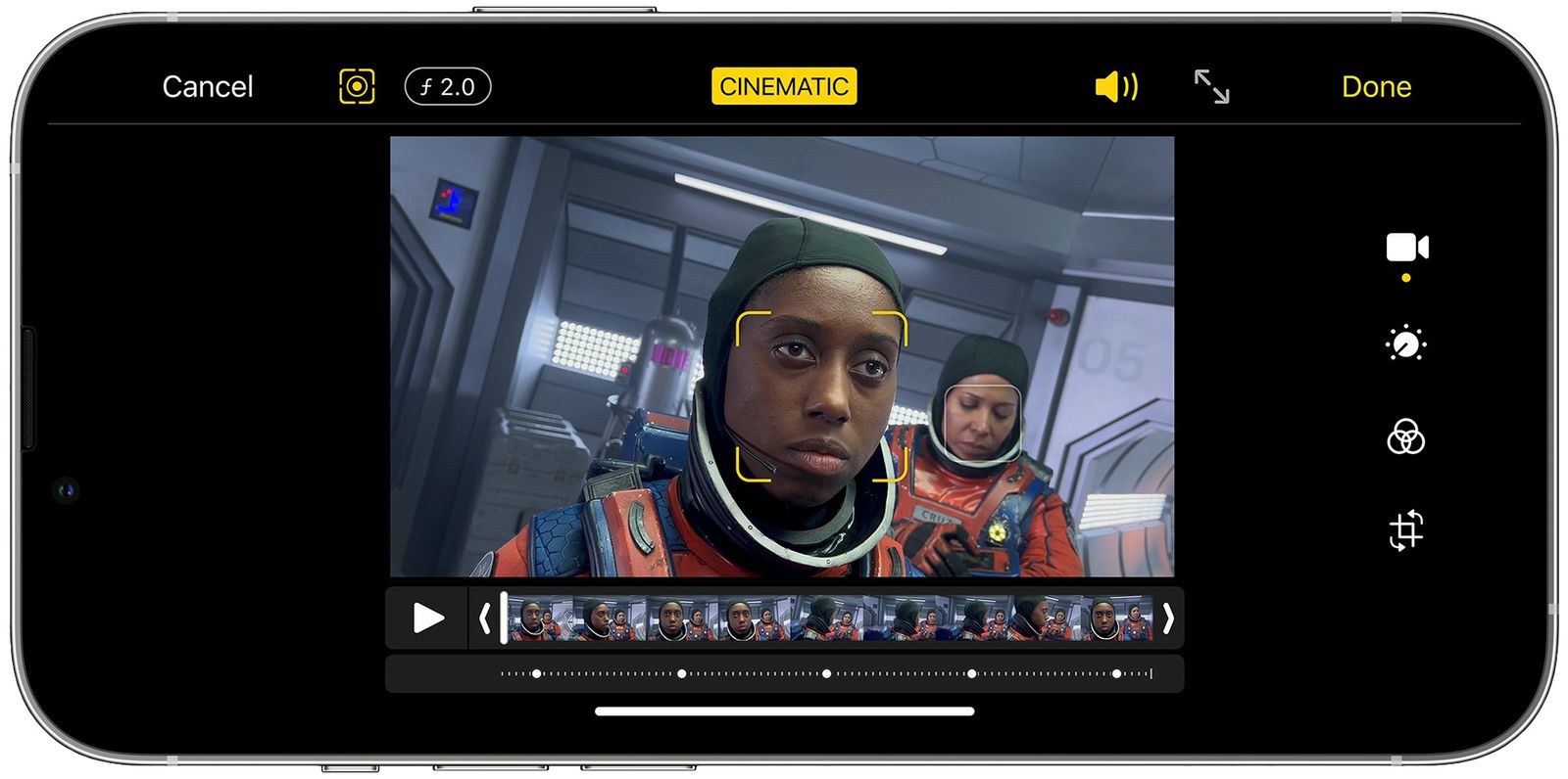 Với tính năng Cinematic, máy sẽ làm mờ mọi thứ nằm ngoài tiêu điểm. Khả năng xoá phông tạo trong thời gian thực và một thuật toán tự động quyết định đối tượng nào nên được lấy nét dựa trên vị trí của chủ thể trong khung hình.