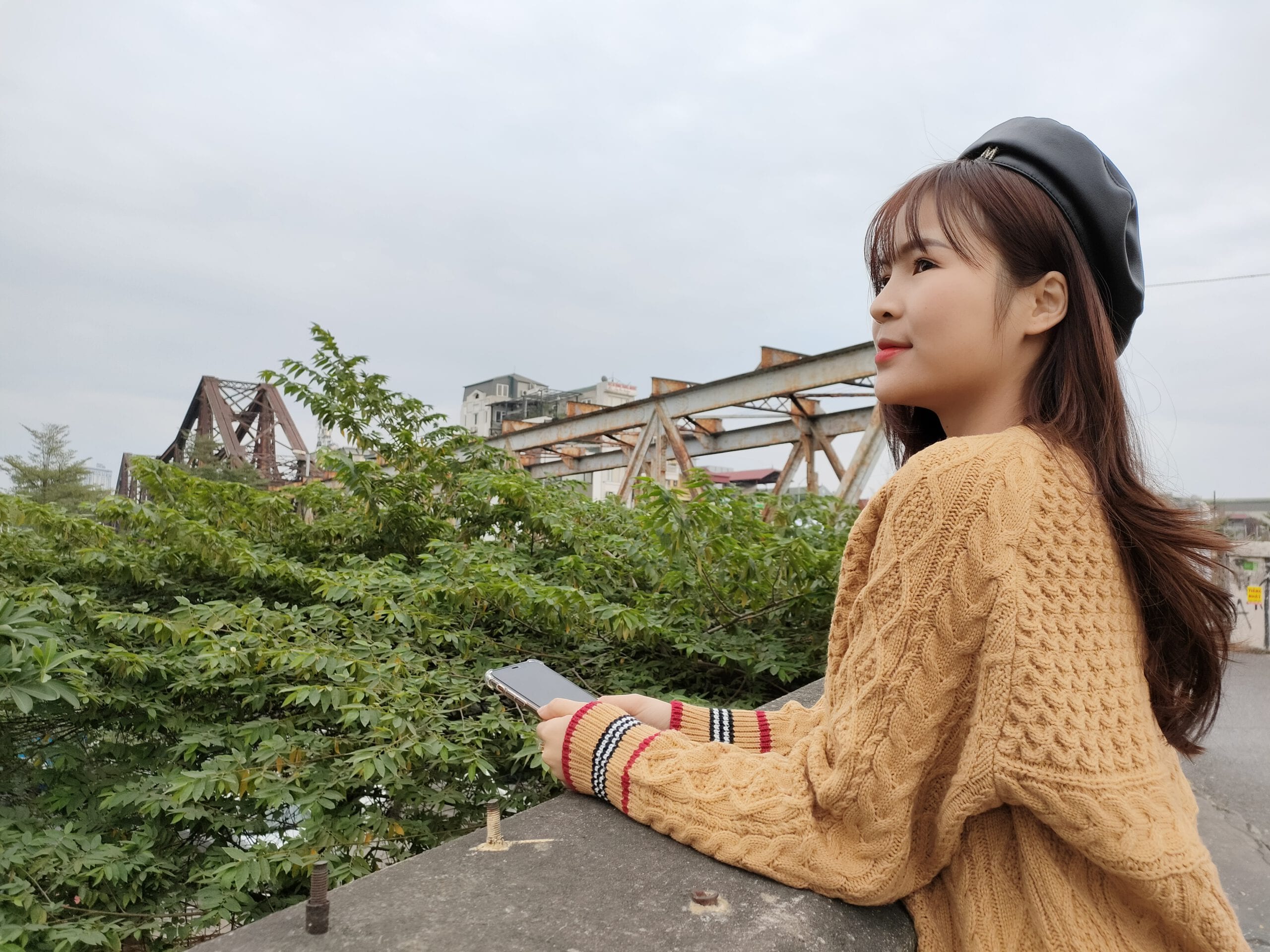 Sang đến ảnh góc rộng nhìn chung máy vẫn giữ được chi tiết chủ thể, bức ảnh cho chi tiết góc nhìn cây cầu rộng và dài hơn nhưng mình thì không bị méo đi. Màu sắc thì cũng chỉ ở mức trung bình.