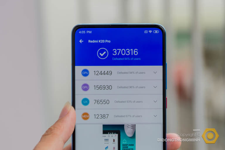 Một trong những điểm đáng khen của Redmi K20 Pro chính là pin. Chiếc máy sở hữu viên pin 4.000 mAh cho phép bạn sử dụng máy trong thời gian dài. Theo đánh giá gần đây cho thấy, K20 Pro cho phép bạn chơi game liên tục đến hơn 7 tiếng đồng hồ.