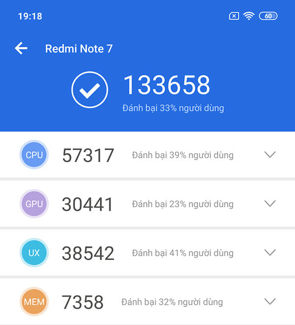 Chấm điểm hiệu năng Redmi Note 7 chính hãng DGW trên Antutu