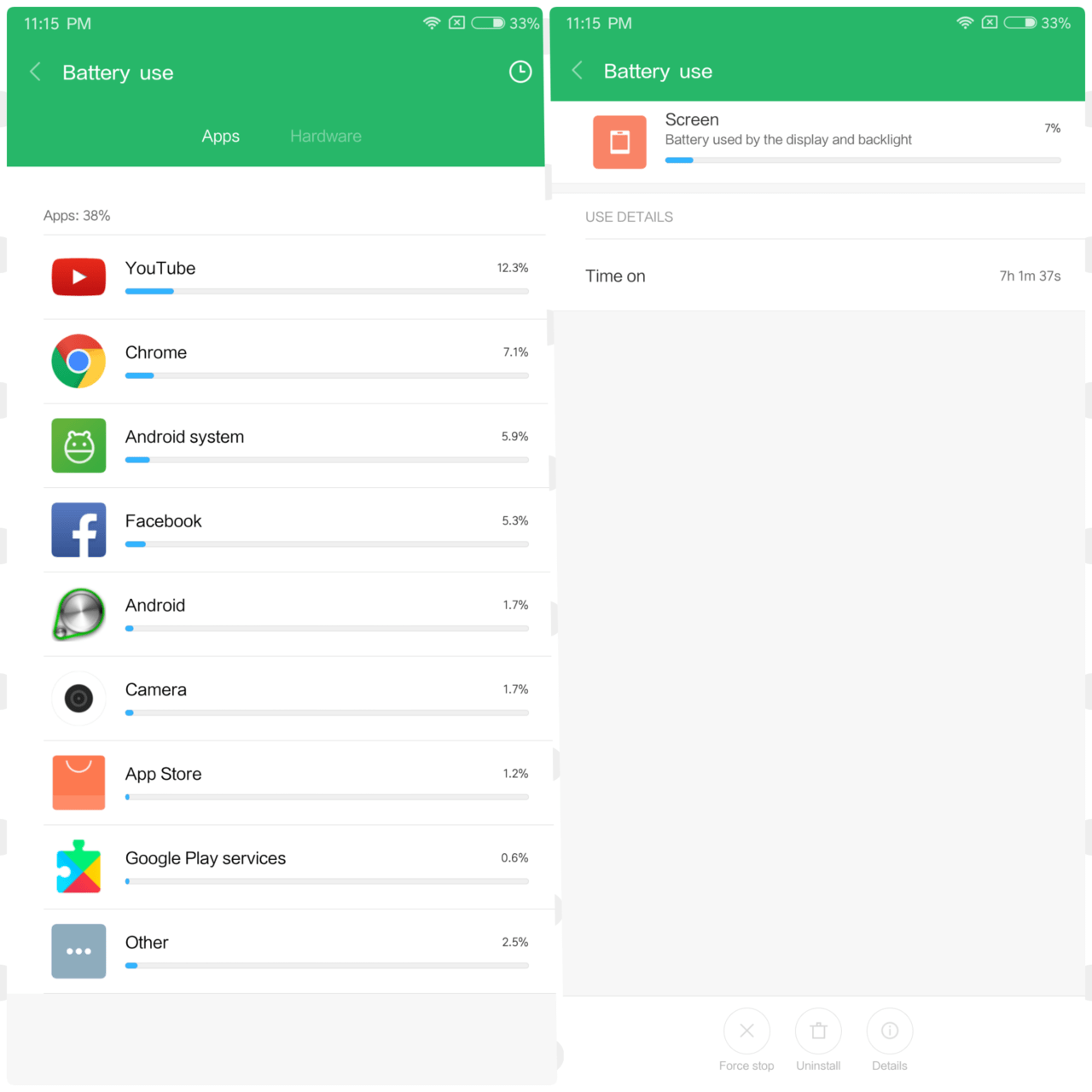 Lý do lớn nhất khiến chúng ta nên sở hữu Mi Max 3 đó là vì máy được trang bị viên pin dung lượng pin 5.500 mAh. So với Mi Max 2, thế hệ Mi Max mới được nâng cấp thêm 200 mAh giúp thời lượng pin trên máy vô cùng ấn tượng. Thử nghiệm dưới đây là mình xem phim, lướt web, lướt facebook cả chiều đến tối muộn thì máy tụt từ 60% xuống còn 33%. Như vậy, nếu người dùng chỉ sử dụng những ứng dụng cơ bản hàng ngày thì Xiaomi Mi Max 3 chắc chắn sẽ có thể trụ được lên tới hơn 2 ngày.