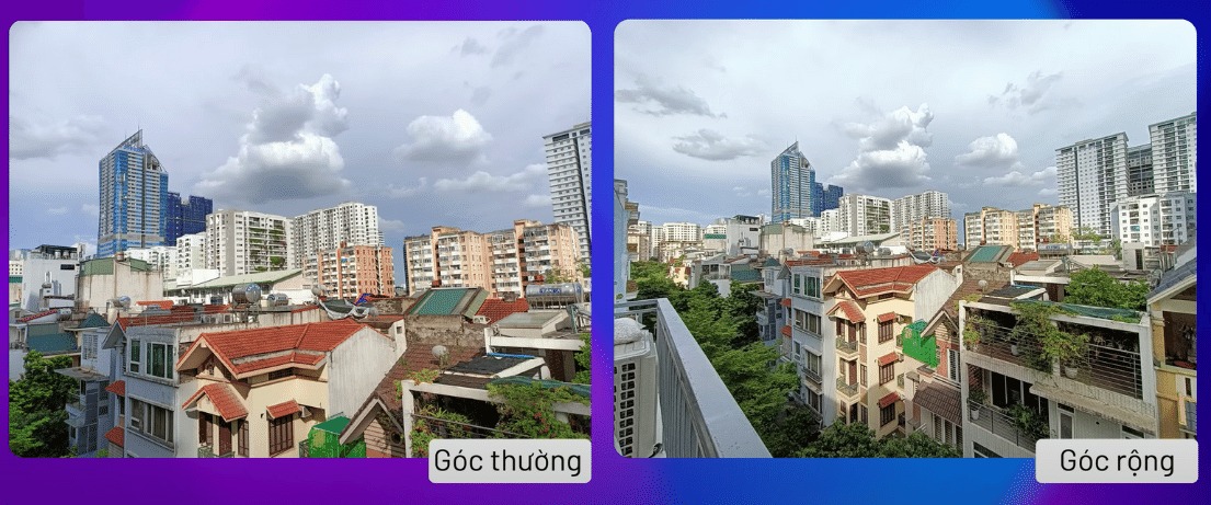 Nhìn vào bức ảnh so sánh giữa góc thường và góc rộng thì mình thấy màu sắc của cả 2 bức ảnh được tái tạo rất tốt, màu sắc nịnh mắt. Ở bức ảnh gốc rộng mang lại góc nhìn khá ấn tượng.