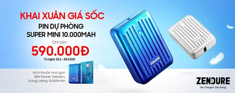 Hãng này đang niêm yết Zendure SuperMini 10.000mAh rơi vào khoảng 790.000đ. Tuy vậy, khi các bạn mua hàng tại DDTM từ ngày 20/2-28/02 sẽ được trừ thêm 200.000đ tức viên pin này chỉ còn 590.000đ mà thôi.