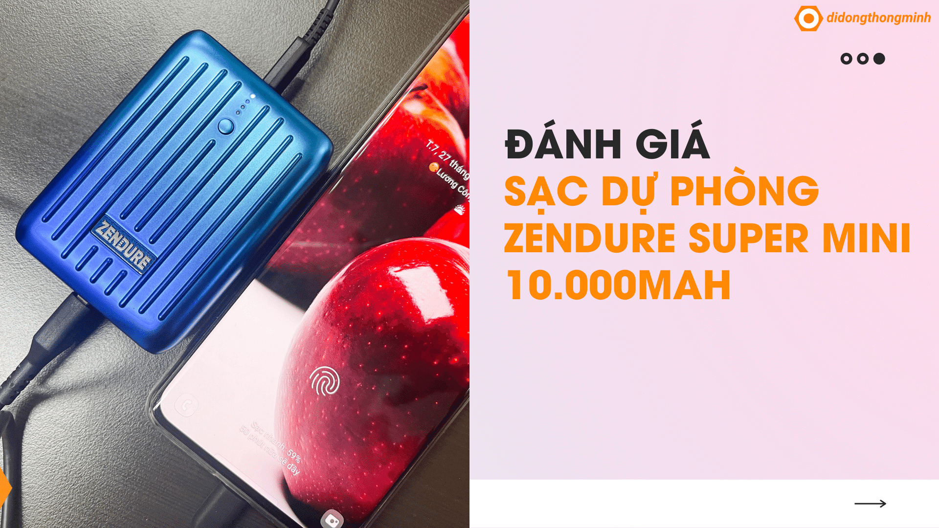 Chào các bạn, trong thời kỳ công nghệ số bùng nổ, các thiết bị di động ngày càng nhỏ gọn. Theo đó thì viên pin của chúng sẽ nhỏ đi vì vậy, pin dự phòng luôn là một phụ kiện cực kì quan trọng mà mình nghĩ ai cũng sẽ cần. Hôm nay, Di Động Thông Minh sẽ đánh giá pin dự phòng Zendure Super Mini 10.000mAh siêu nhỏ nhưng nó vẫn đảm bảo đủ tính năng cần thiết để bạn dùng hàng ngày nhé!