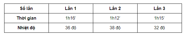 – Nhiệt độ môi trường thử nghiệm : 27 ~ 33 độ